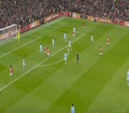 第4分钟,曼联球员多尔古左路低平球传中,胡桑诺夫关键解围,随后B费开出角球,马奎尔近距离头球攻门击中横梁弹出,曼城逃过一劫。
